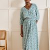 This dress is made in a beautiful blended fabric that looks like linen but with more feminine flow. A T-shape with no arm seams, dropped shoulders with short sleeves and flat pleats front and back for dressy style every day.