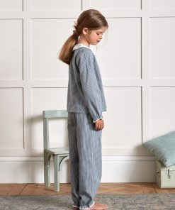 Cyrillus Girl’s Striped Cotton Pyjamas With Shorts | Rayure Bleu & Ecru | Girls 3 To 16 Years