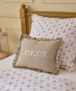 Cyrillus Home Decorative Objects Gingham Check Cushion With Amour Lettering | Vichy Curry