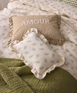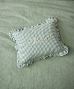 Cyrillus Home Decorative Objects Gingham Check Cushion With Amour Lettering | Vichy Vert