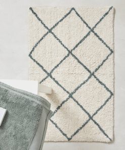 Cyrillus Home The Parent Suite Bath Mat With Crosshatch Motif | 6391 Bleu Fonce Bicolor & M