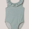 Elégante cagoule bébé ornée d’un volant en tissu Liberty Annie May.