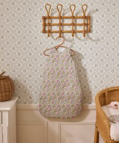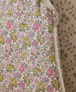 Godington Park motif sleepsuit made with Liberty fabric, lined with ivory cotton percale. Made in Portugal. Heat index 2 (TOG2) for superior warmth in a bedroom where the temperature is between 18 and 22°C.