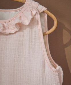 Organic cotton sleepsack with a frilly neckline. The WARMTH index is 2 (TOG 2). This standard index is ideal in a bedroom at a temperature of between 18 and 22 degrees.