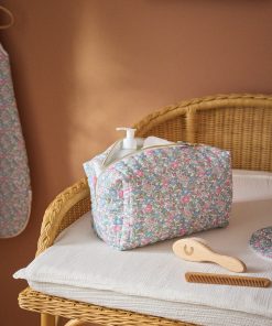Trousse de toilette matelassée confectionnée dans un authentique tissu Liberty. À l’intérieur, 2 poches plaquées de chaque côté.