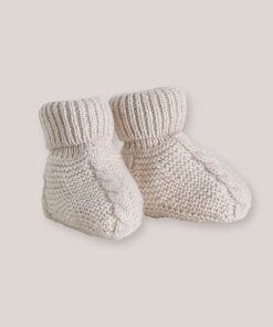 Garter stitch bootees heightened with a narrow cable create a soft and warm cocoon to protect baby’s delicate feet.