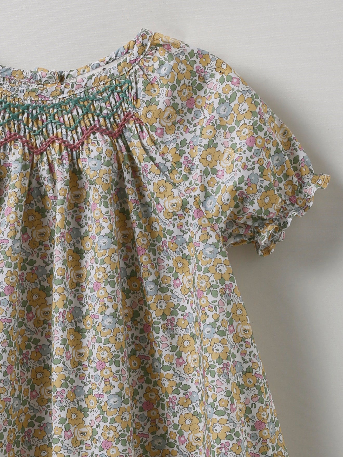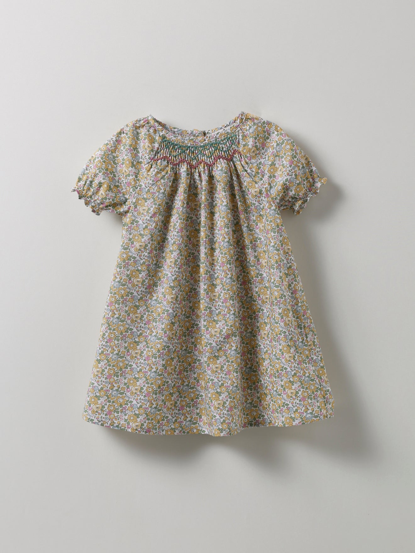 Handmade smocking, a fresh and delicate Liberty fabric and a style that’s suitable for the little ones… this refined dress makes a wonderful gift to welcome the newborn or summer’s arrival.
