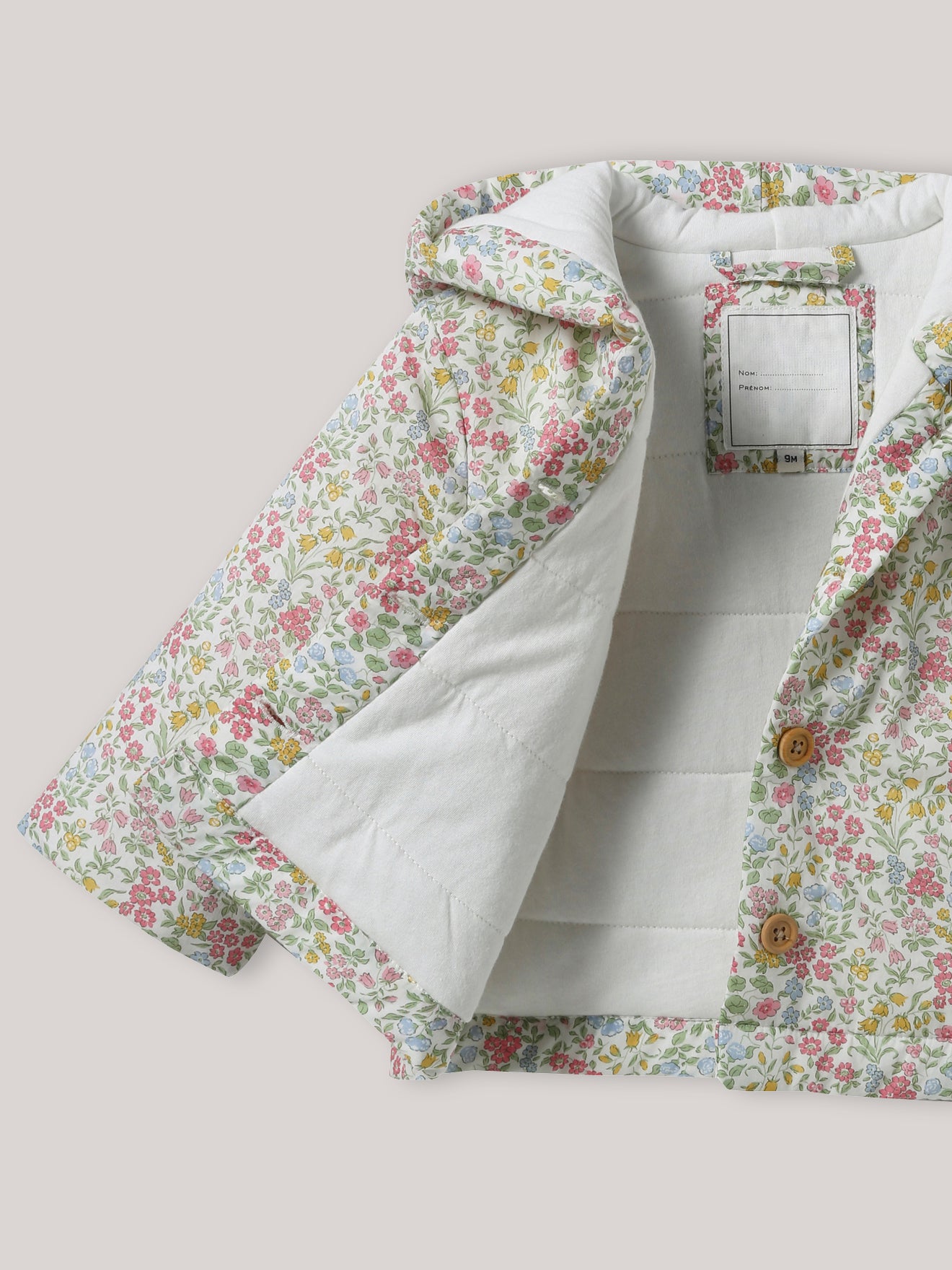 This jacket made with Liberty fabric combines elegance and comfort The lightweight padding provides soft warmth yet remains light and supple. Ideal for spring or cool summer evenings.