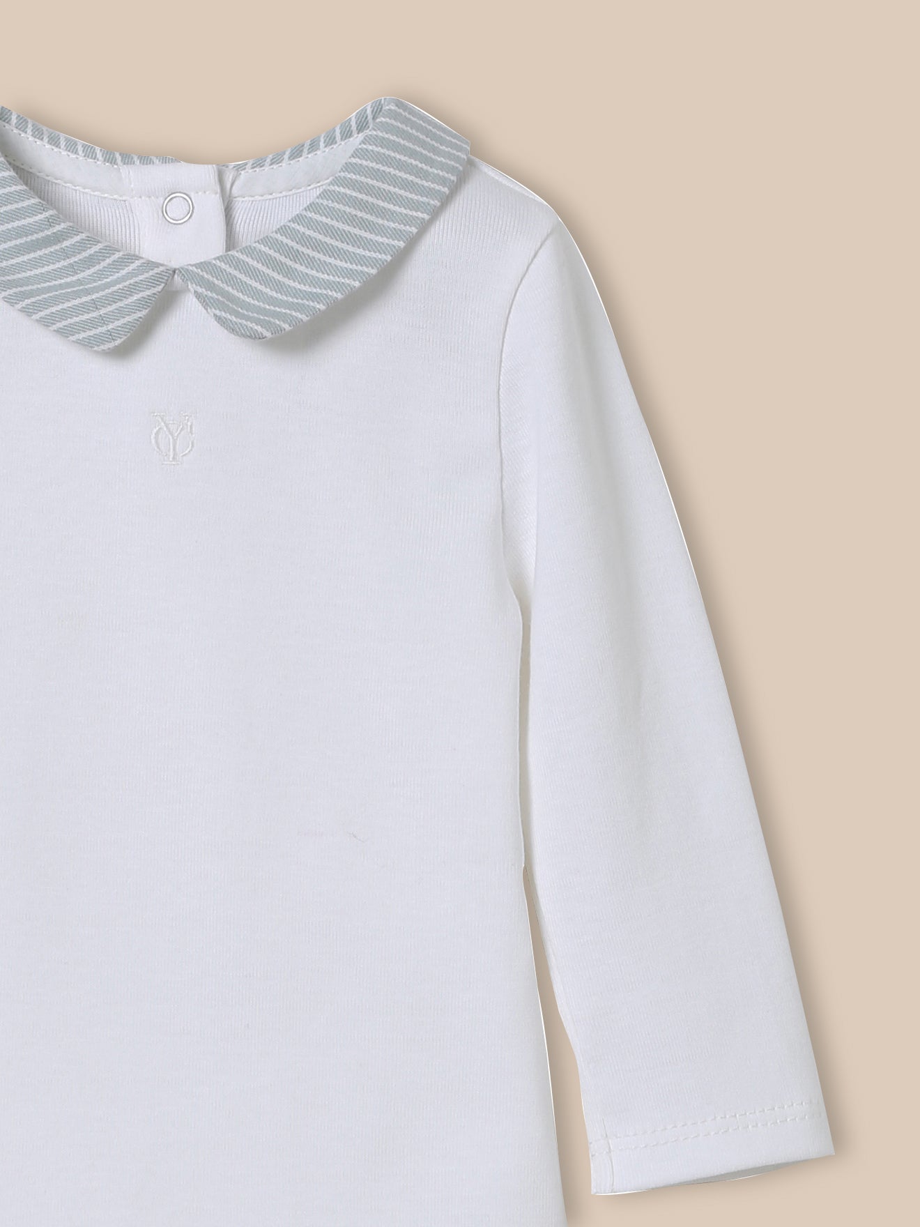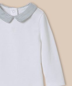 Cyrillus Baby’s Organic Cotton Bodysuit With Check Collar | Rayure Vert Doux | Baby Birth