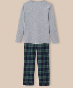 A contemporary T-shirt made with organic cotton and soft cotton flannel bottoms make for pyjamas just perfect for defying winter in style.