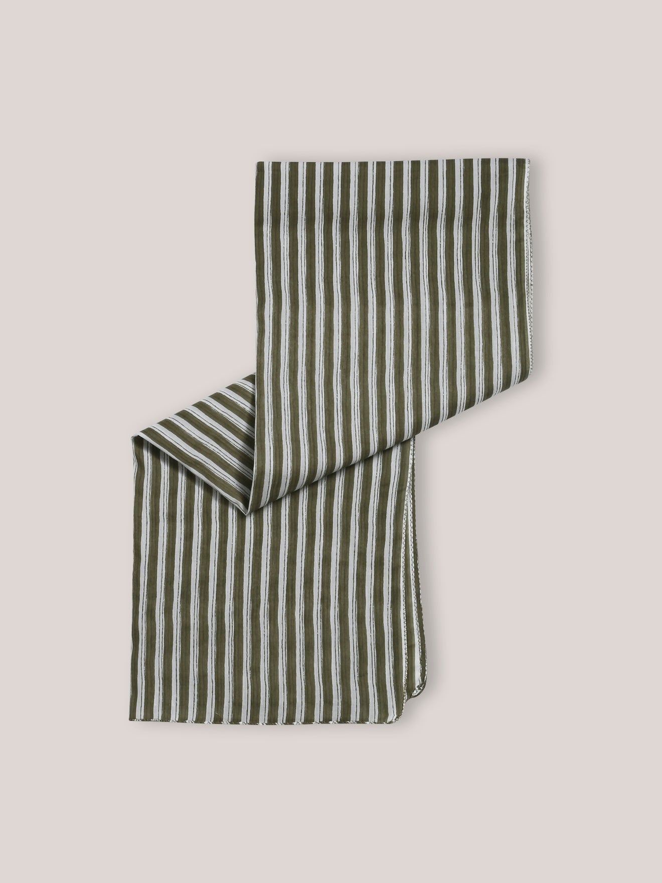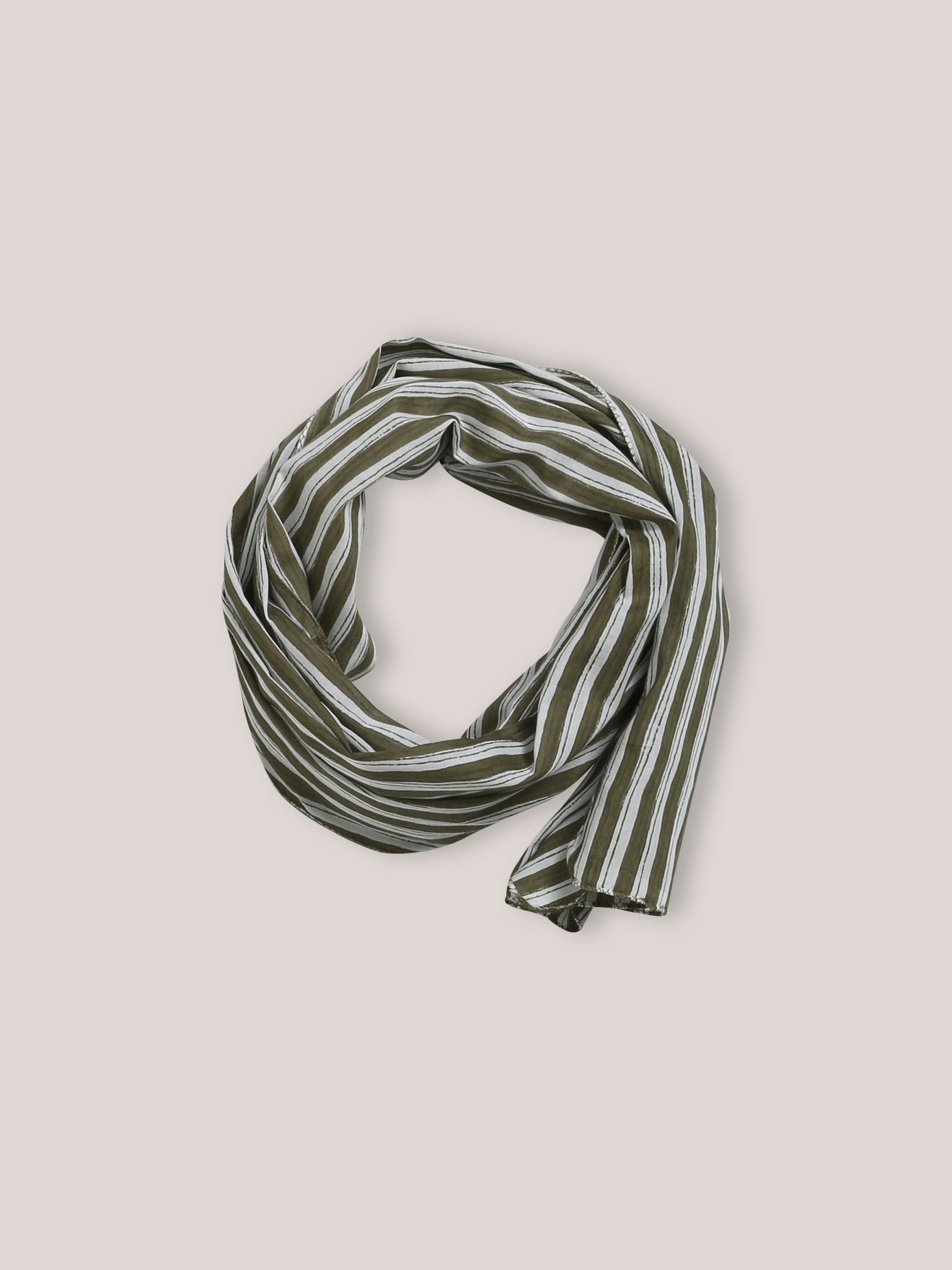 With narrow stripes on a dark khaki background, this cheche scarf is easy to pair harmoniously with the boy’s wardrobe.