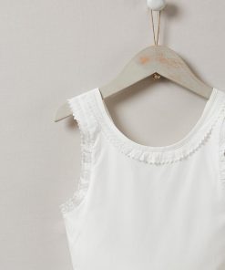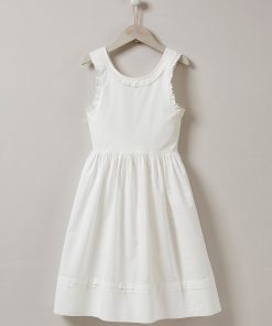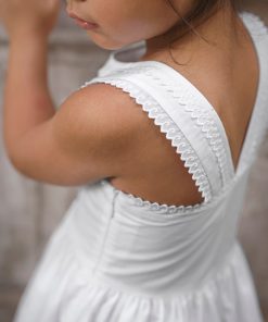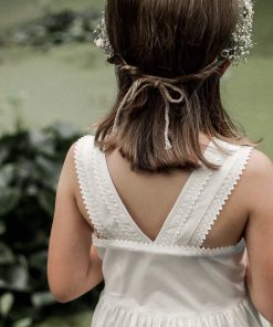 A refined dress that’s perfect for little bridesmaids. Straps and crafted bare back, embroidered scalloped trim,… a dress for dancing and twirling with the newlyweds.