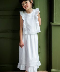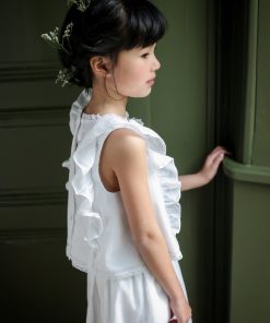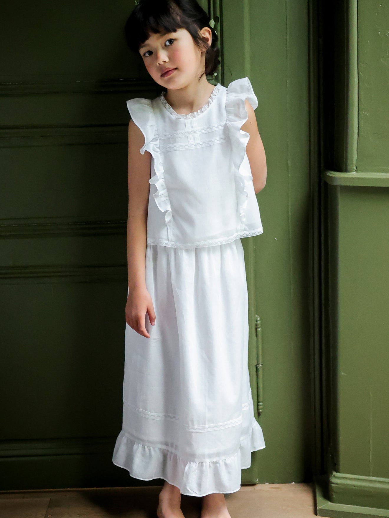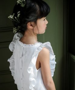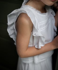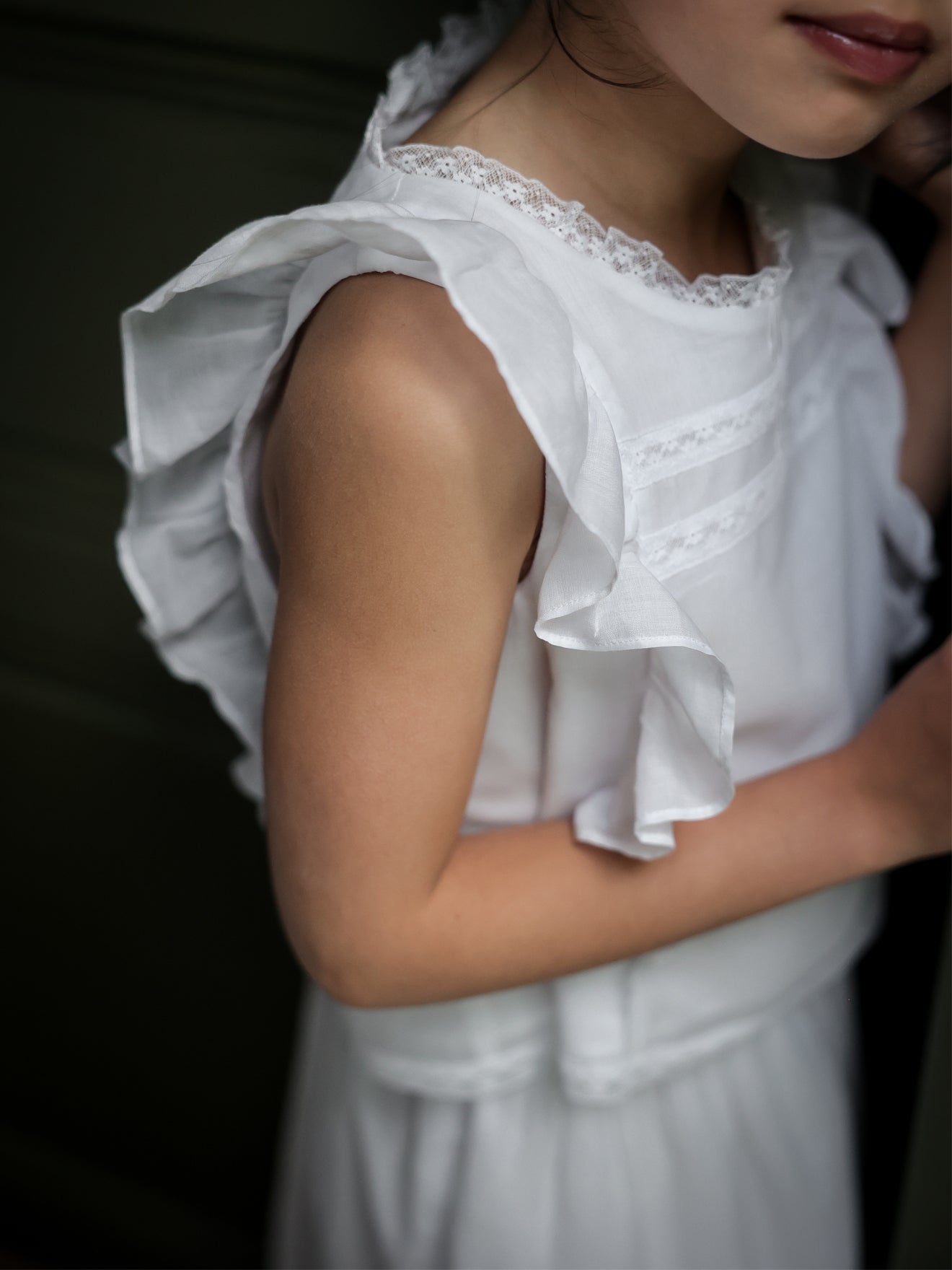 A timeless piece with a beautiful and loving past that’s meant to hand down. The outfit is meticulously assembled with specific attention for this special day: ruffles, lace trim and a beautiful lightweight, lined voile. Designed by our stylists and made by our partners in Madagascar.