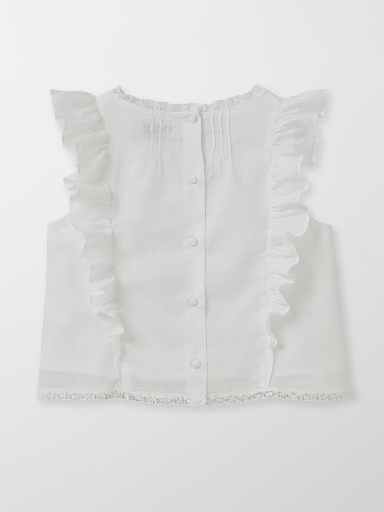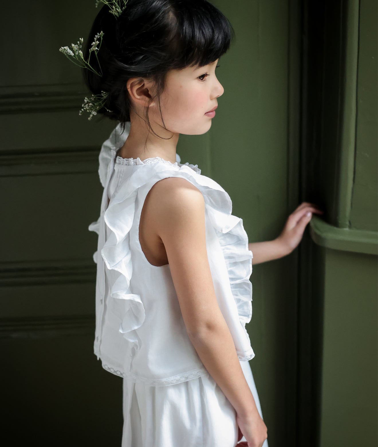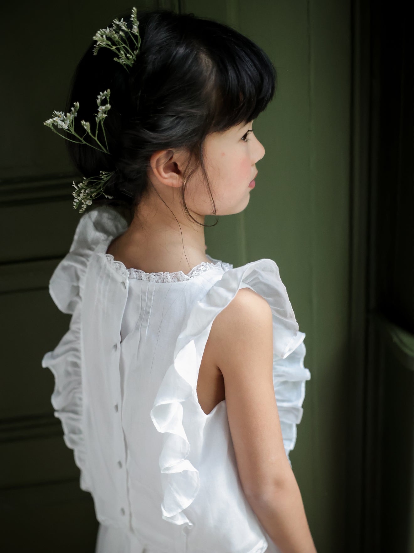 A timeless piece with a beautiful and loving past that’s meant to hand down. The outfit is meticulously assembled with specific attention for this special day: ruffles, lace trim and a beautiful lightweight, lined voile. Designed by our stylists and made by our partners in Madagascar.