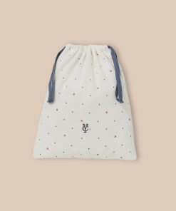 - Taille élastiquée. Pochon brodé assorti