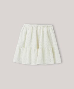 Full broderie anglaise skirt. Wide ruffle at the hem for a breezy shape. Fully elastic waistband with decorative bow. Matches the broderie anglaise blouse to create a pure and refined outfit.