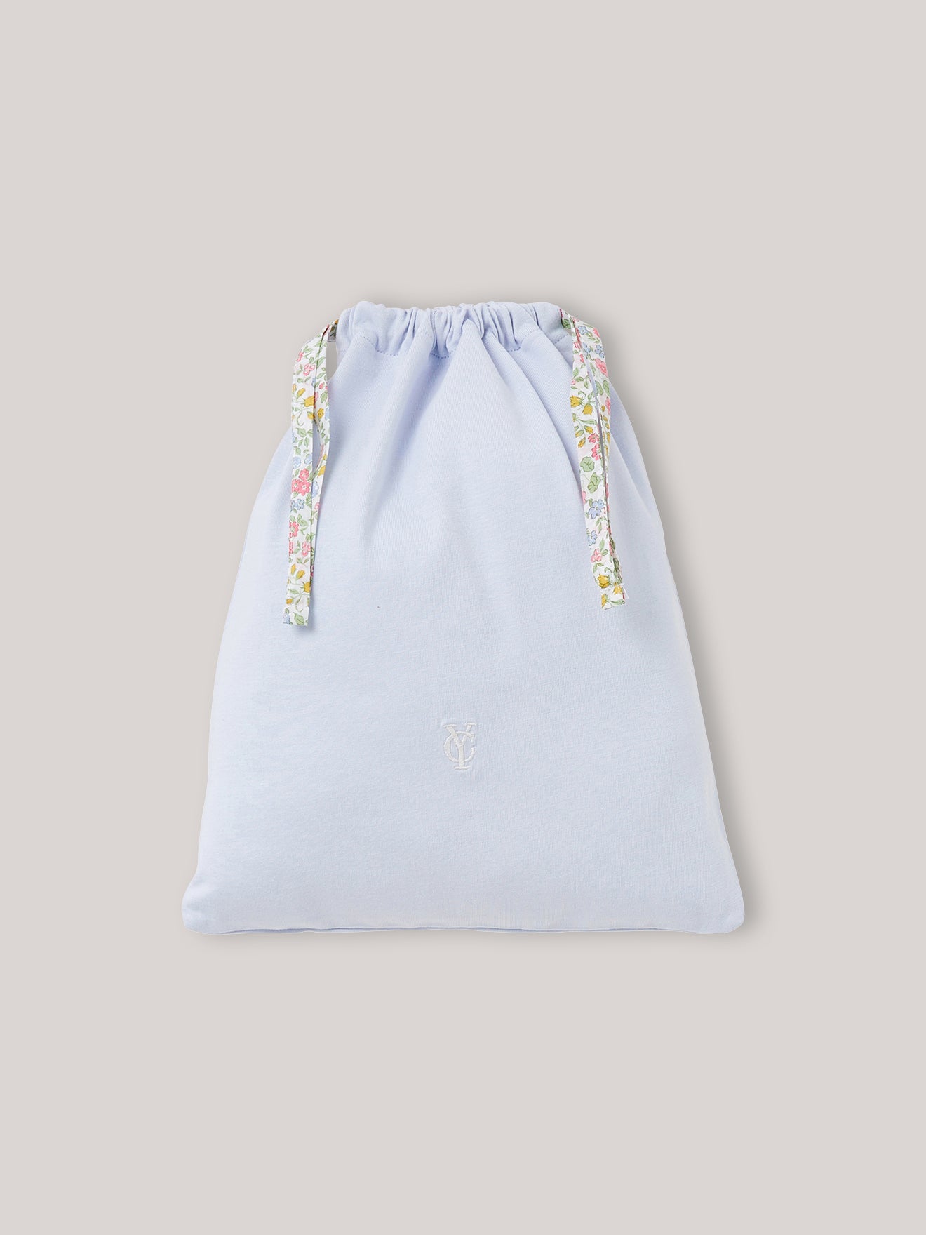 Pyjamas with shorts come in a matching pouch with CY embroidery