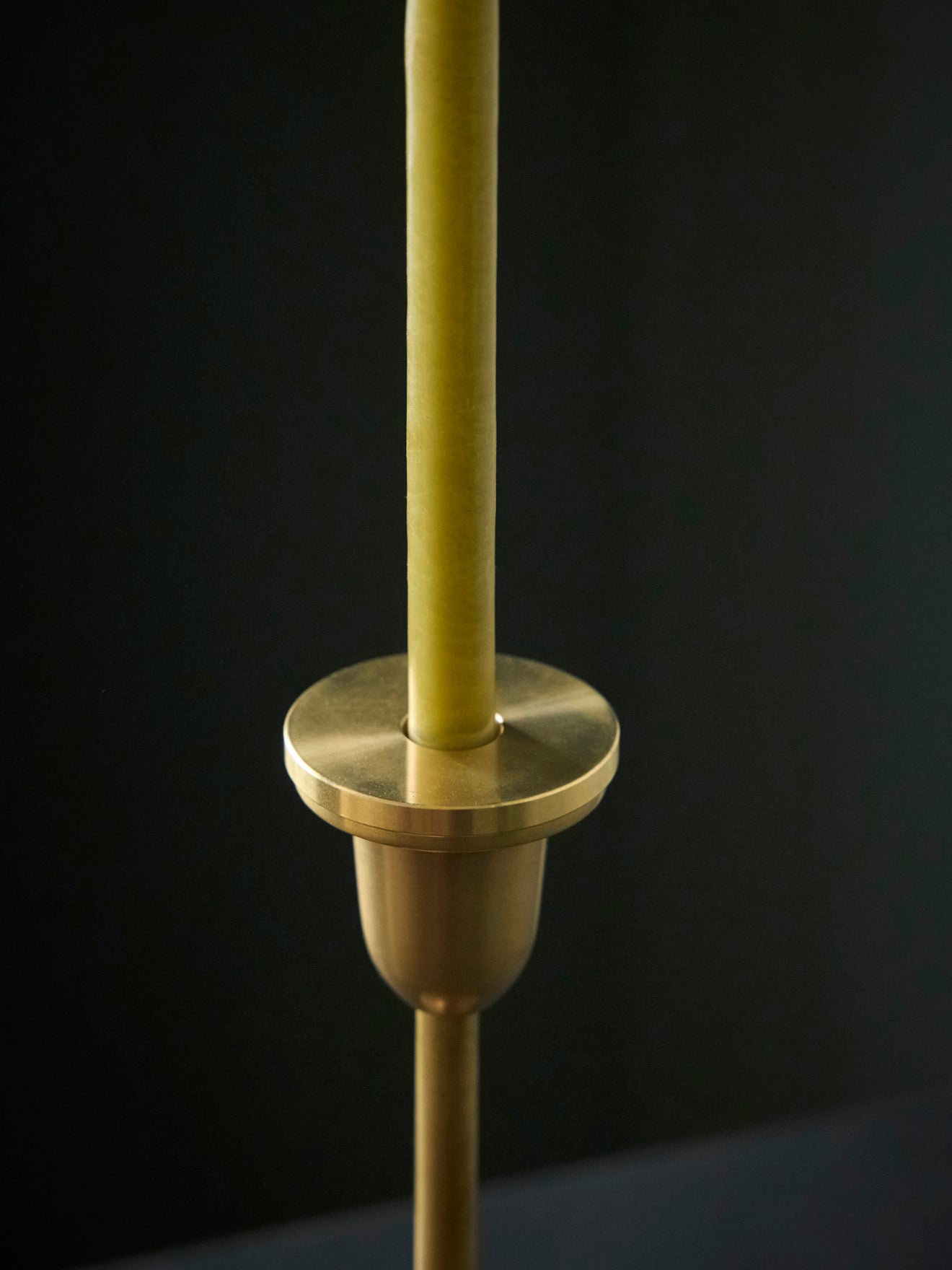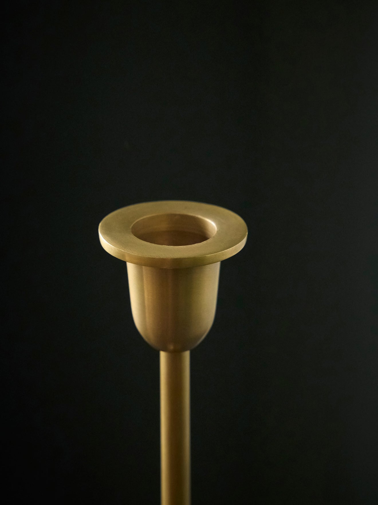 Elegant and slender brass candle holder to accommodate a standard candle. To be paired with other Elegant candle holders sold on our website.