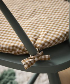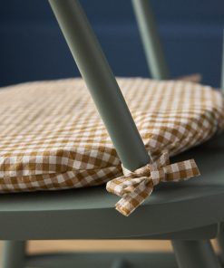 Flat chair cushion with a gingham or floral print outer. A pretty way to personalize a child’s chair for cozy style. Cushion attaches with small matching ties.