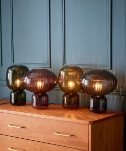 Lamp in tinted, chiseled glass. Made in Portugal. Mastered glass work with ’50s inspiration.