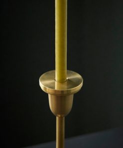 Elegant and stylish brass candle holder to accommodate a standard candle. To be paired with the other Elegant candle holders sold on our website.