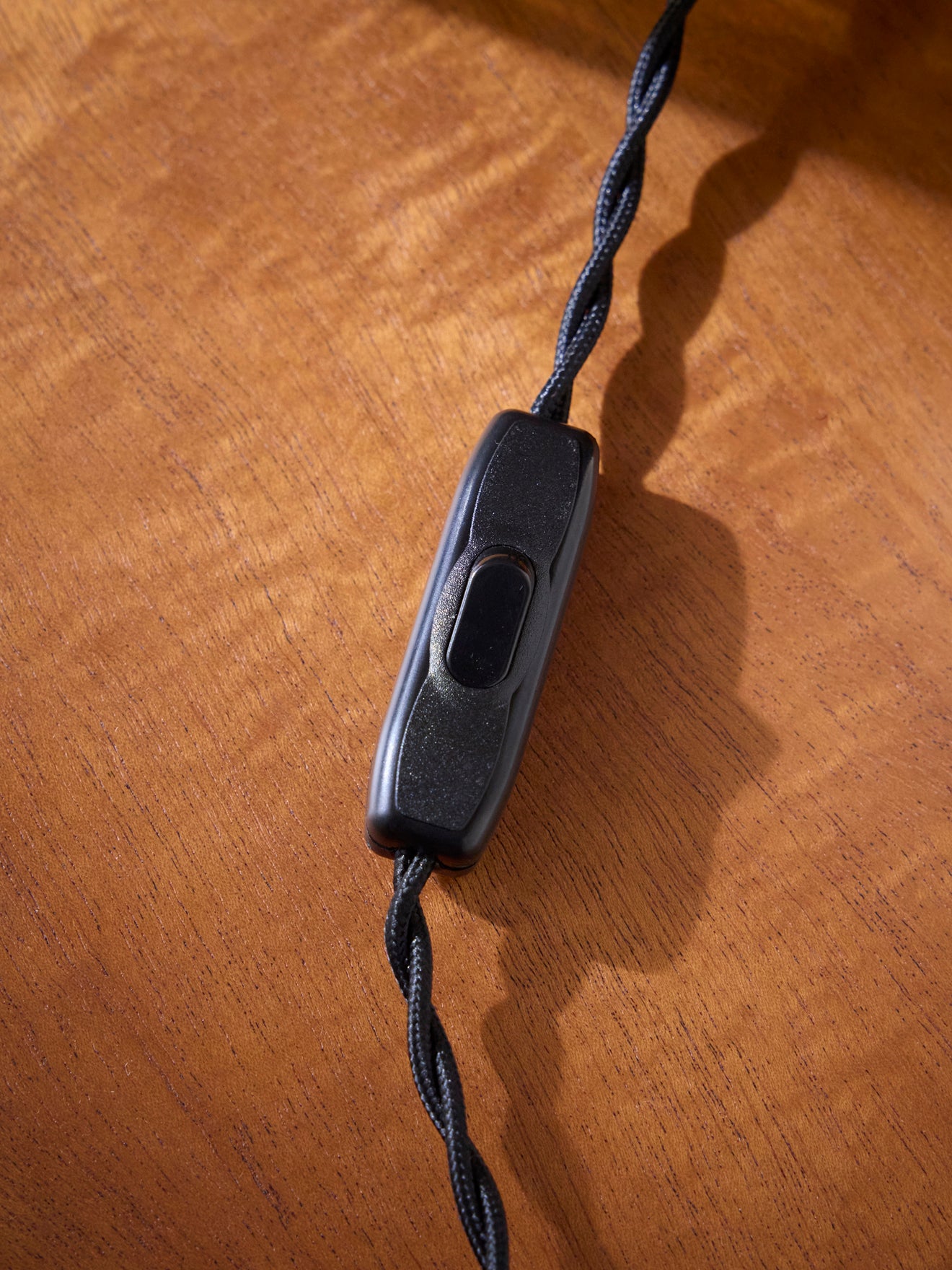 - Twisted black cable, 3 meters, black switch. Light bulb not supplied (screw base, LED E27 – 8W max.)