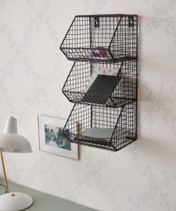 Metal wire shelves made of 3 pigeonhole compartments. Industrial-inspired and decorative storage.