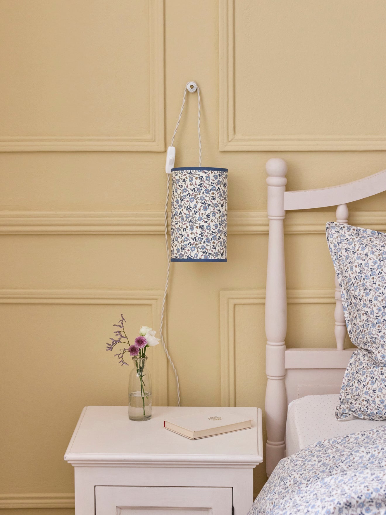 Lampshade for the portable lamp made with genuine Liberty fabric. Non-electrified portable lamp made in France, bordered with a plain blue bias.
