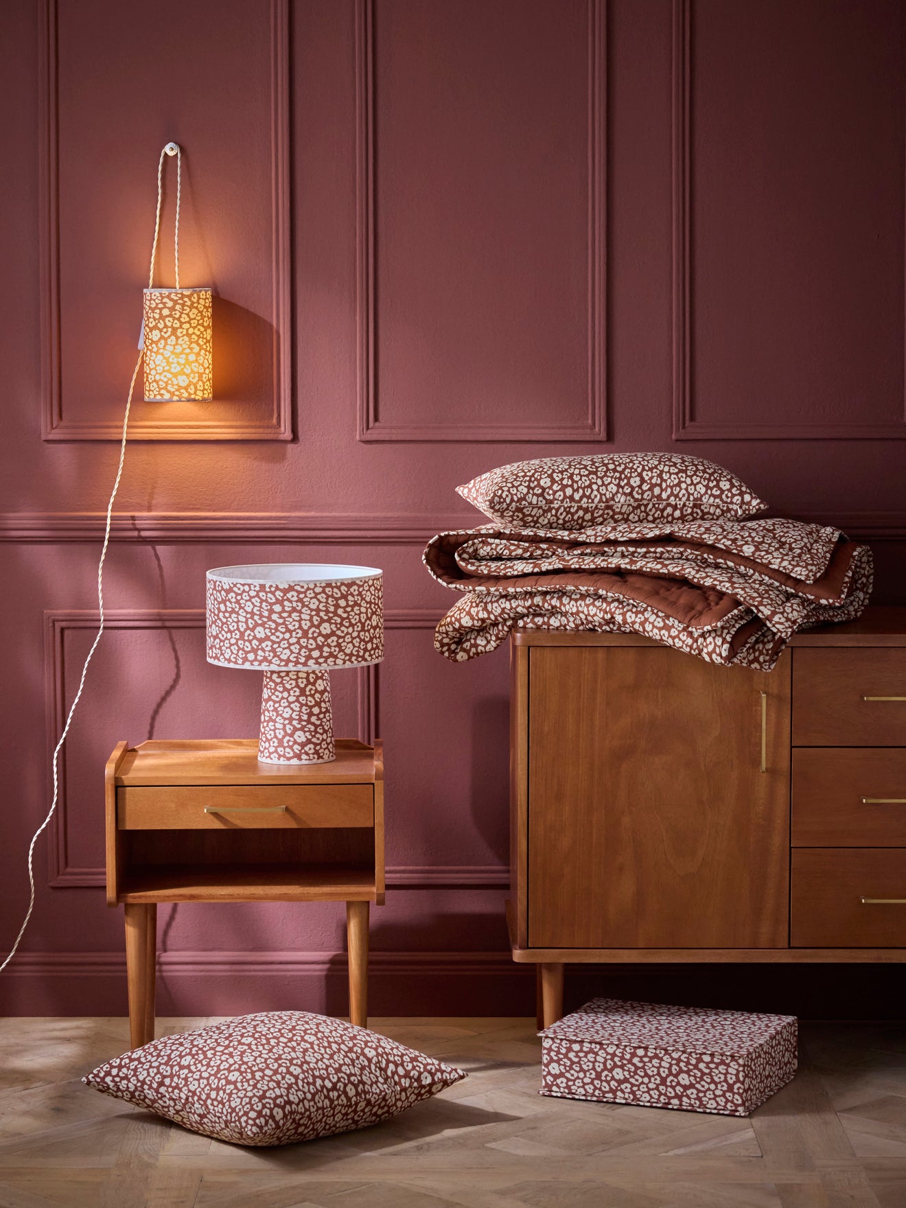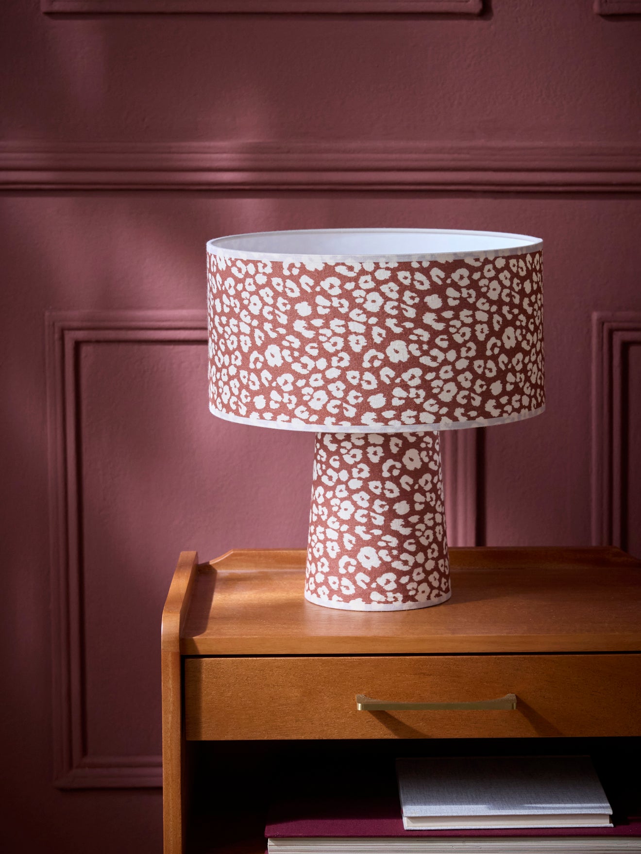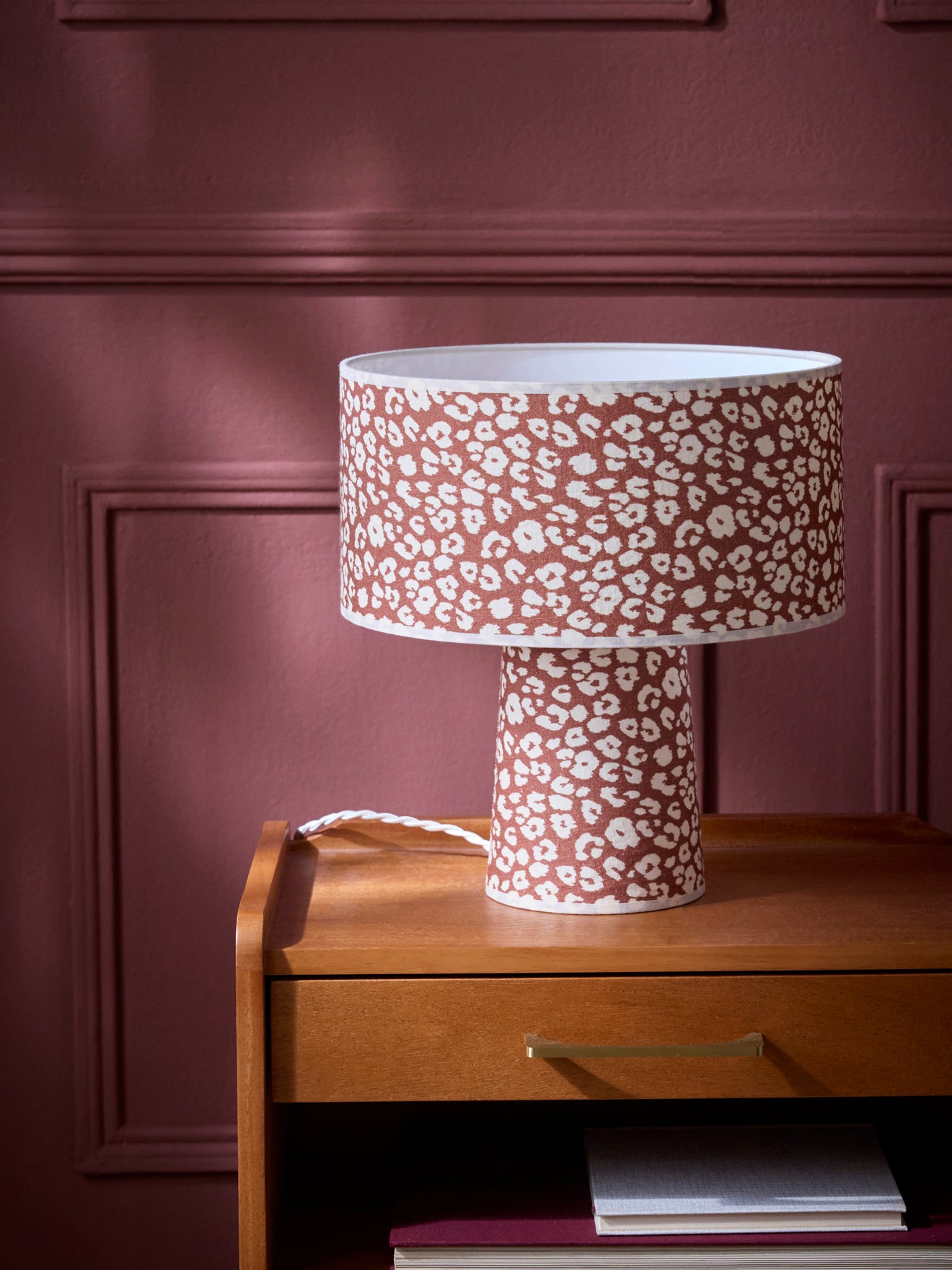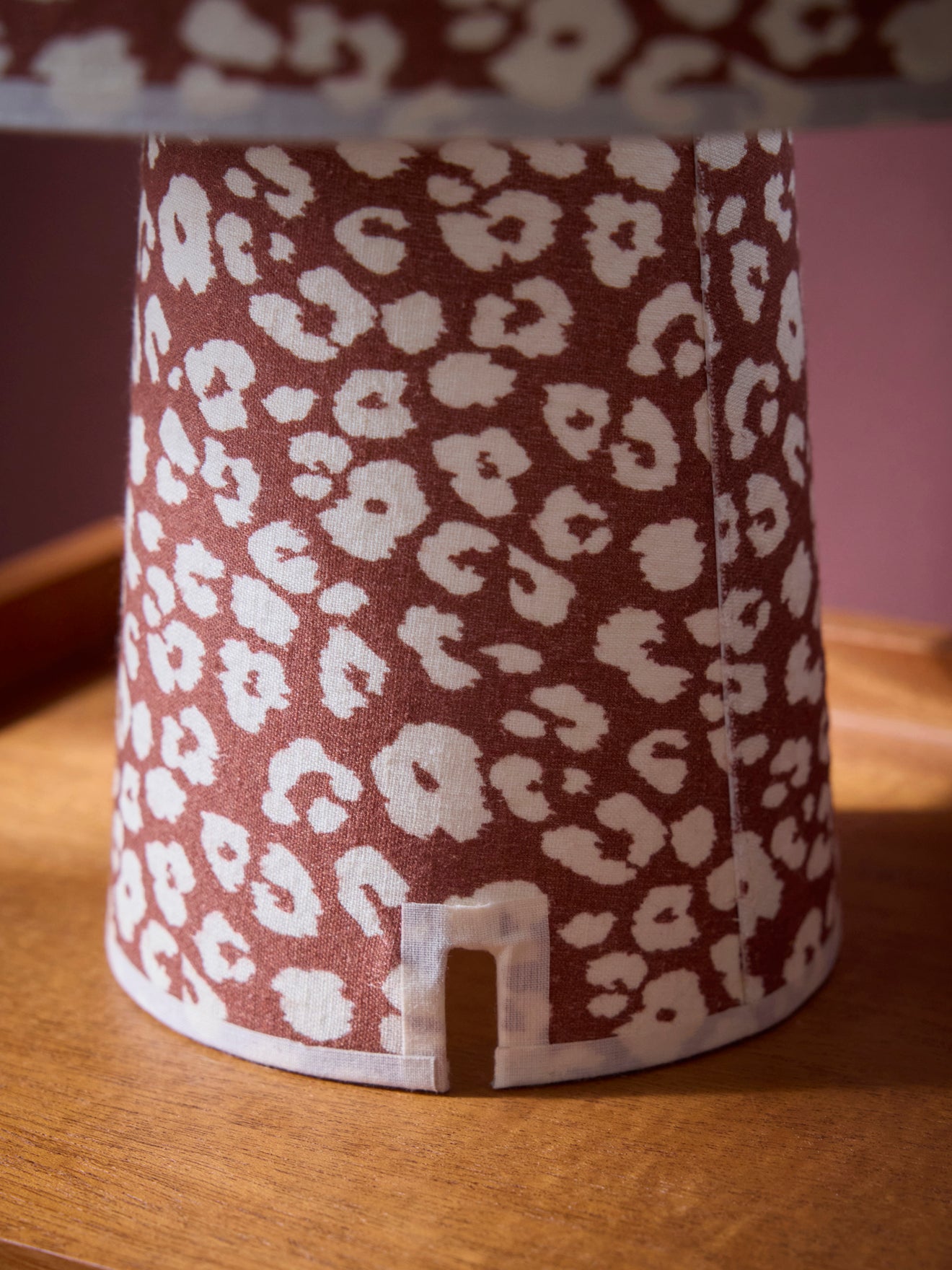Table lamp entirely covered with printed cotton and linen fabric. The Fauve print is an exclusive print found in our Home and Ready-to-wear collections. Lampshade trimmed with an ivory bias. Non-electrified lamp made in France, compatible with our twisted cable.