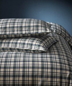 Classic, authentic and timeless style. Tartan-style woven-dyed check pillowcase. Made from softened cotton for a softer feel. Pillowcase trimmed with a small flat ruffle with blue, green and ecru check weave on 2 sides.