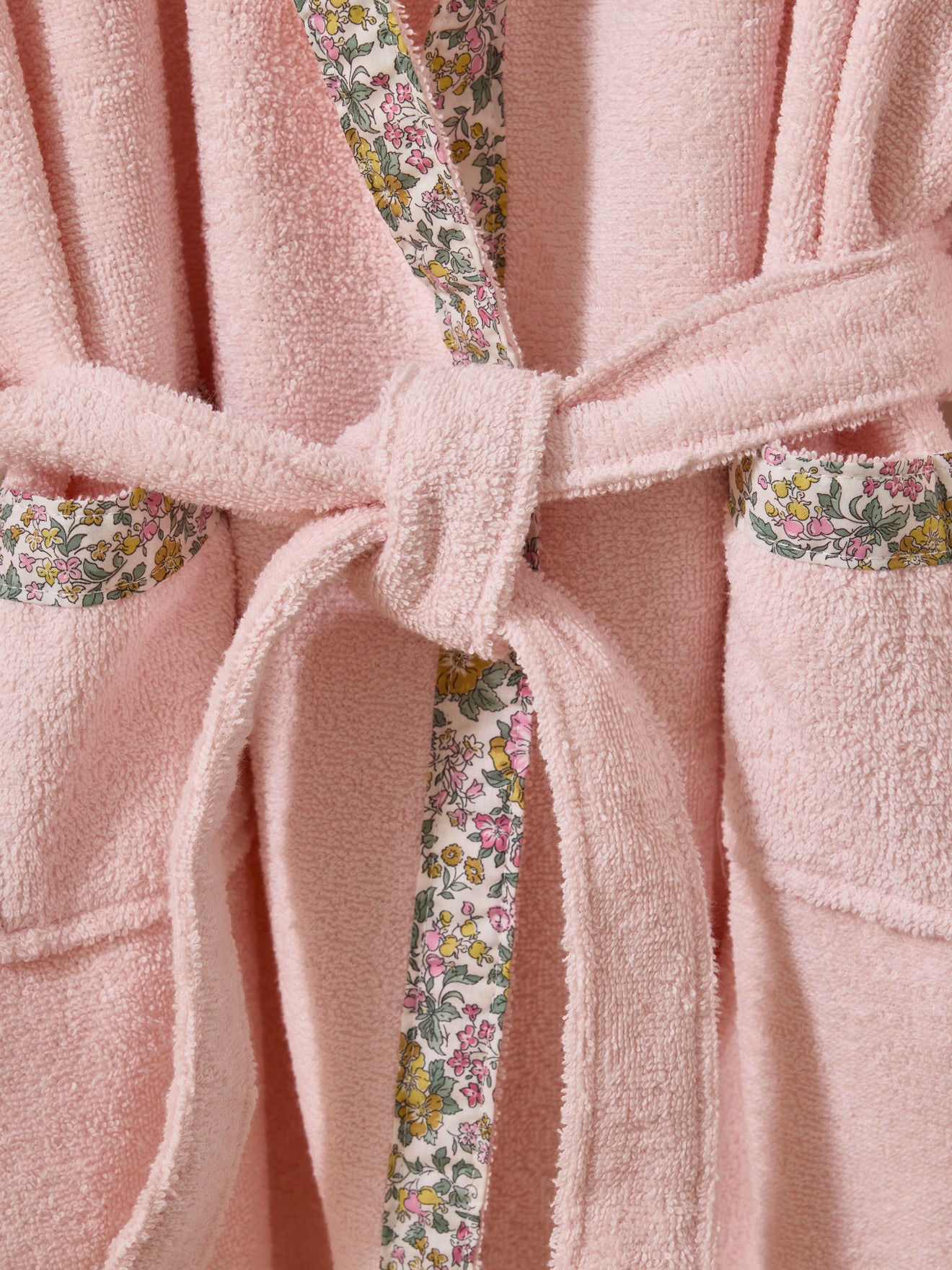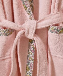 Absorbent cotton bathrobe with floral print trim. A soft and refined garment made in Portugal.