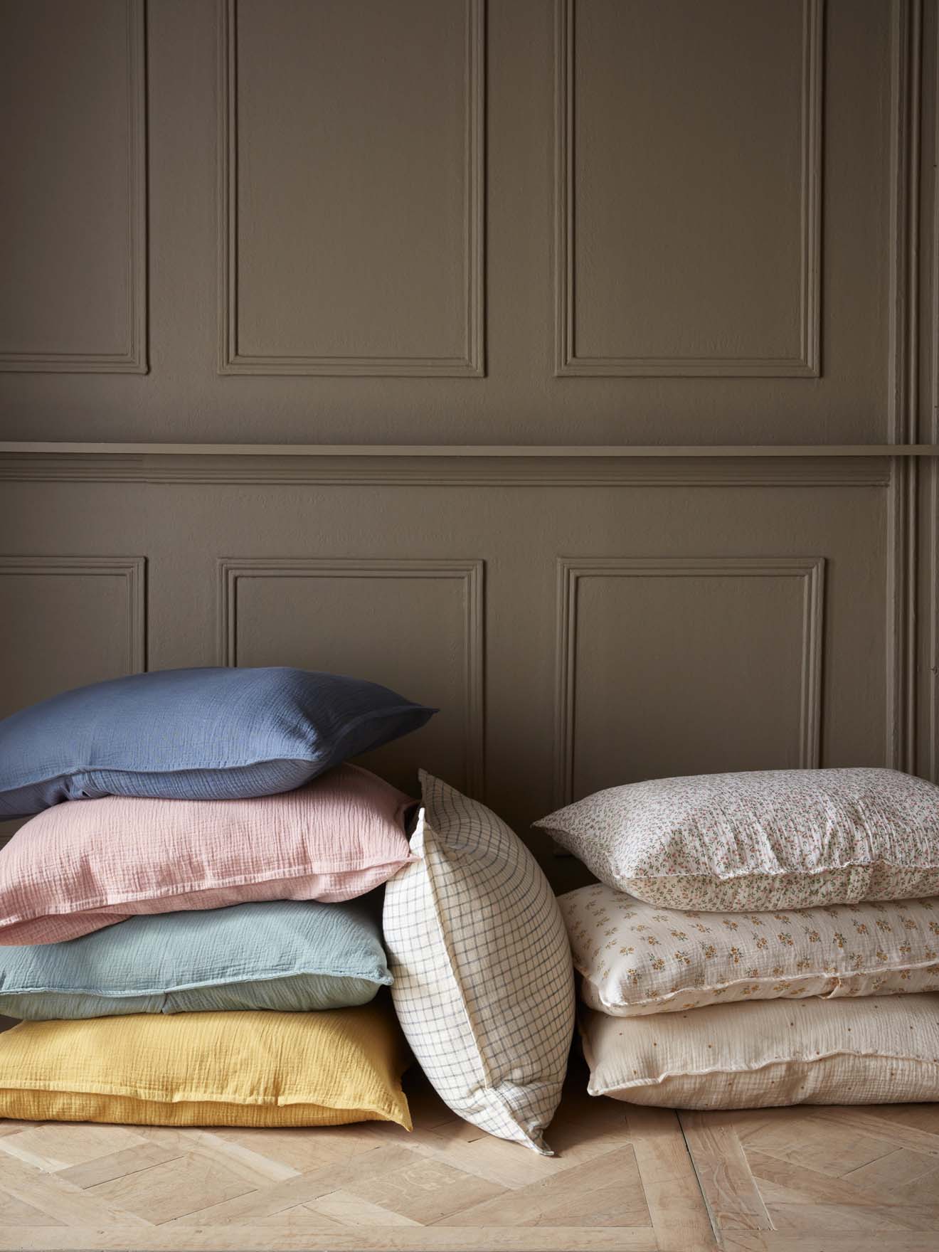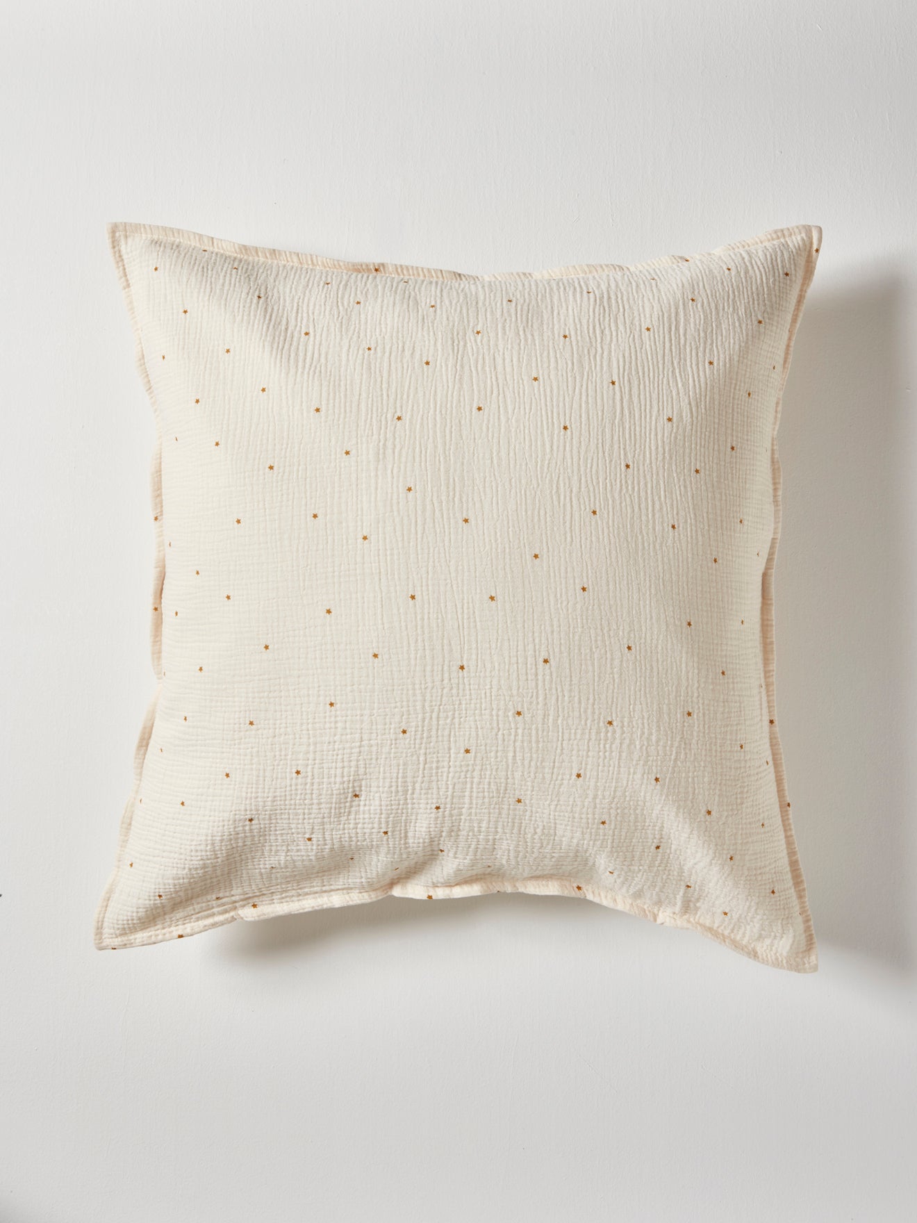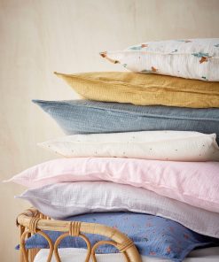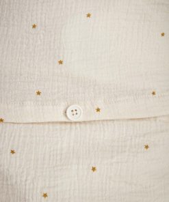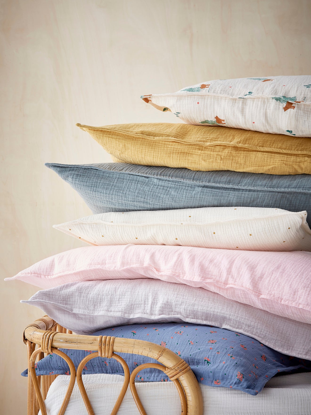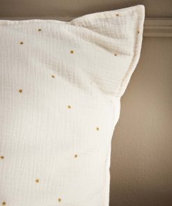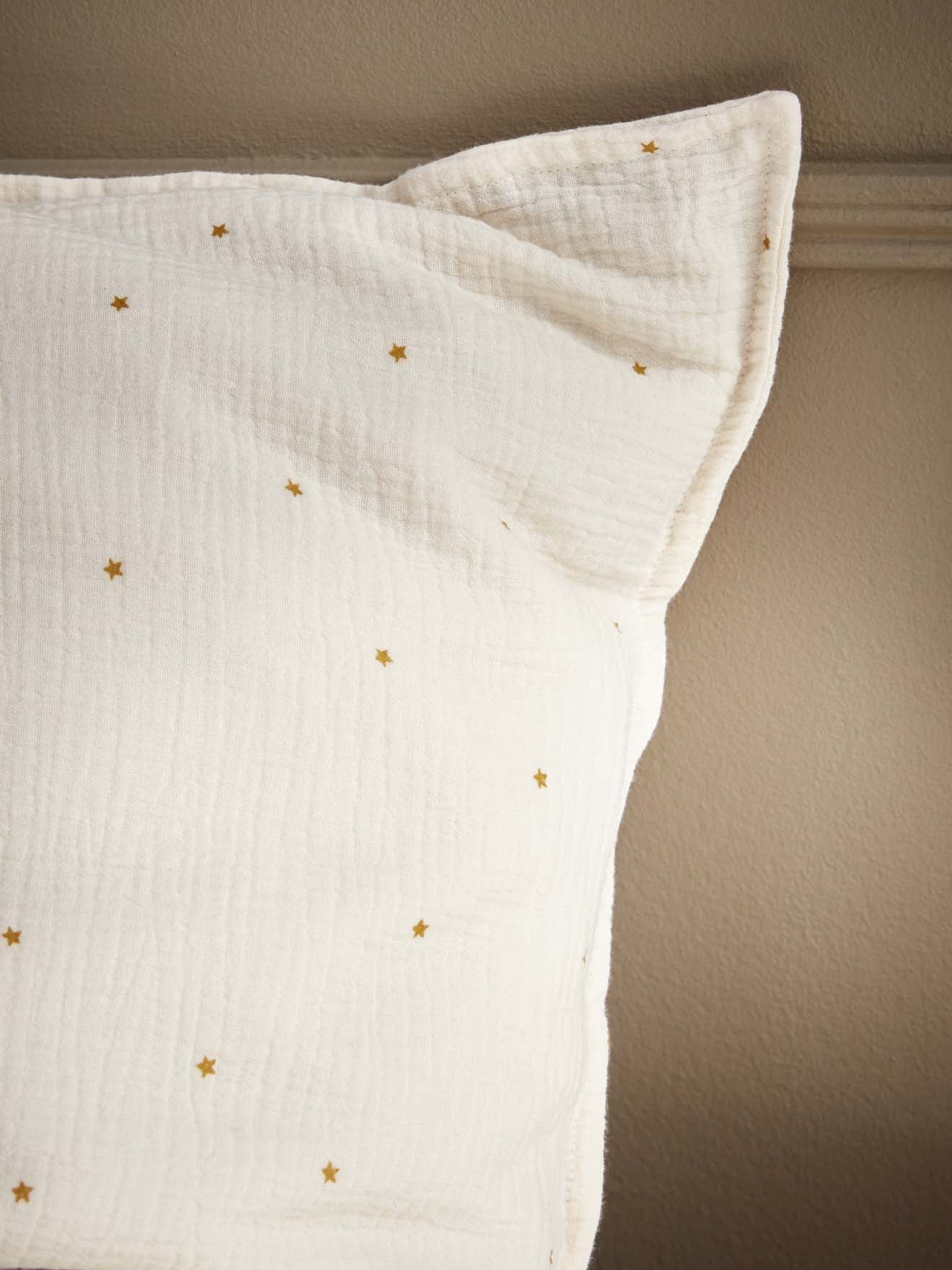 Honeycomb pillowcase covered with little ochre stars on both sides. Soft and crinkled cotton gauze in a star version.