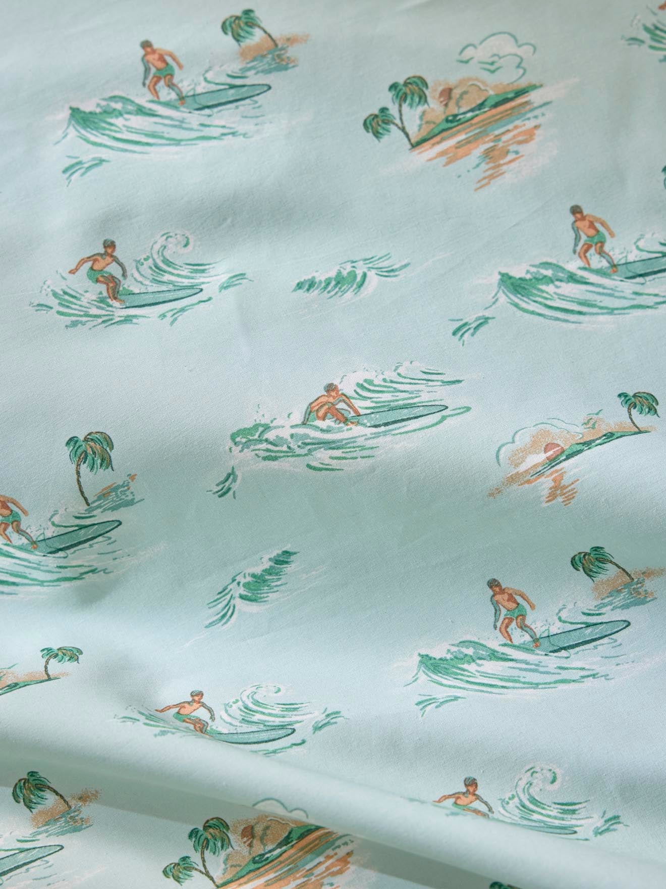 Vintage surfing inspiration on a soft and hardwearing cotton percale pillowcase. An exclusive motif print front and back, and designed by our style team.