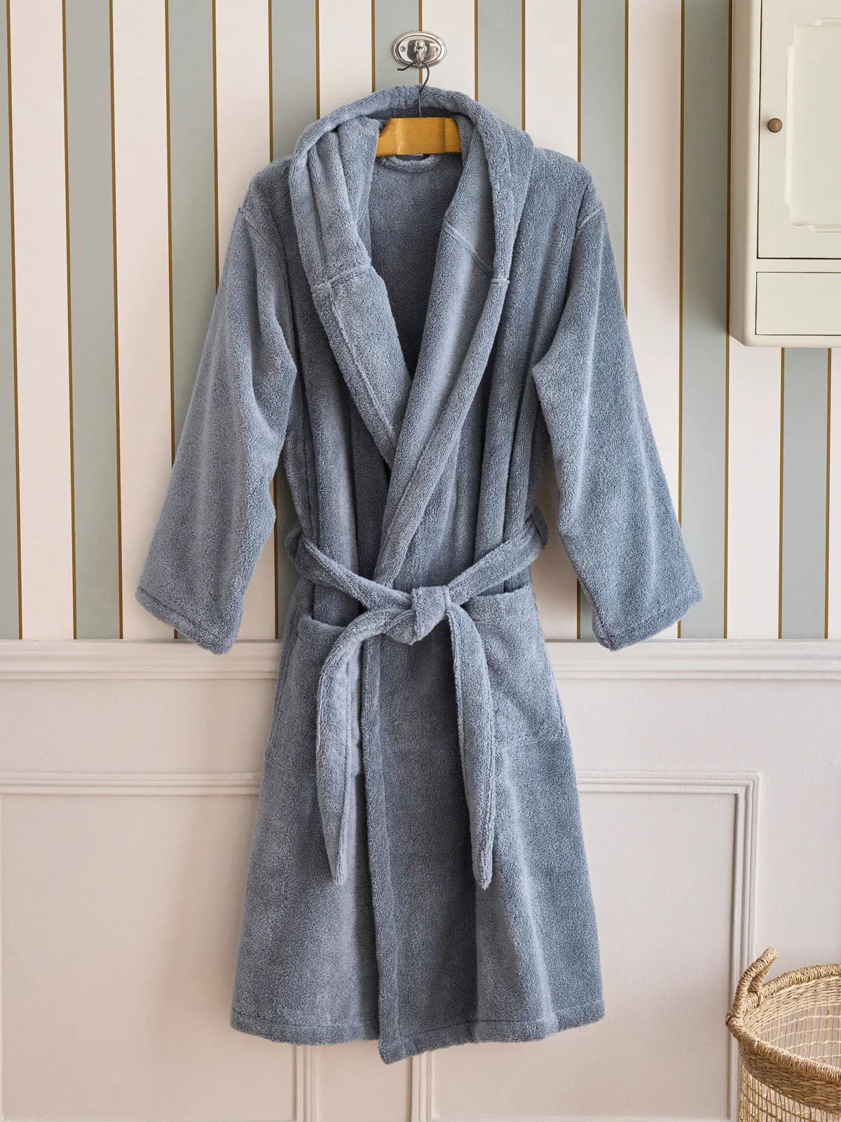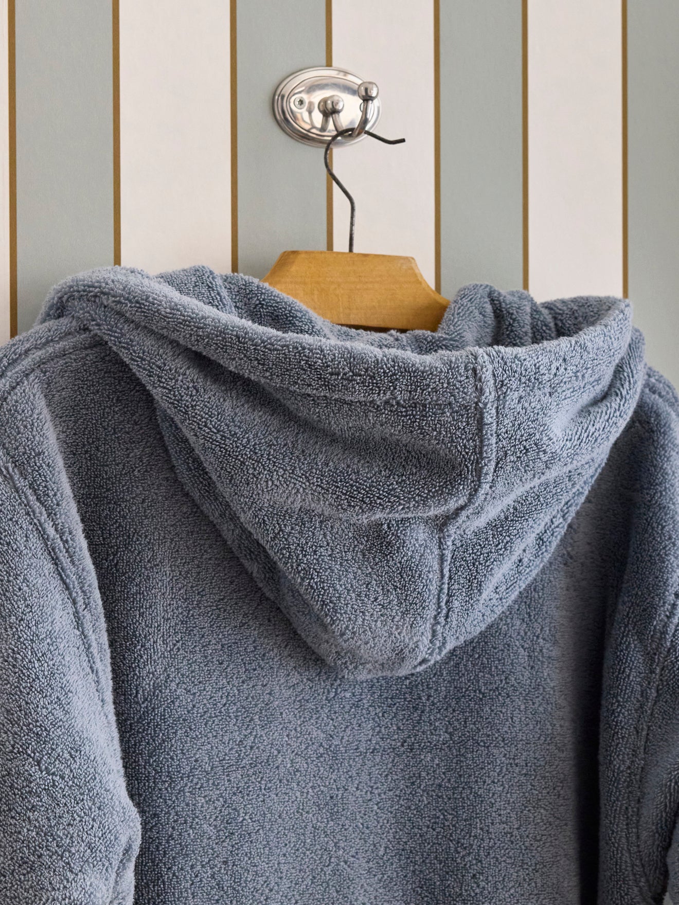 A hooded bathrobe in soft, absorbent and cuddly terry cloth. Perfect for stepping out of the bath or bed.