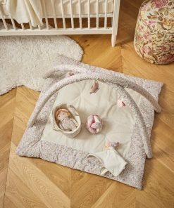 Grip ball in Liberty fabric (Godington) and velvet. Shape, textures and bell sound: everything is brought together to awaken toddlers’ senses.