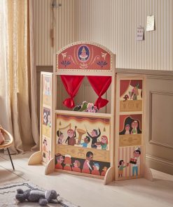 Theater in natural wood with retro inspiration and illustrated by Ingela P. Arrhenius. Making up stories helps to develop the imagination and stimulates language.