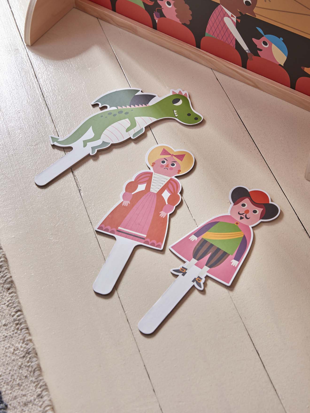 Comes with 3 cardboard shadow puppets. Comes with instructions for assembly. . For age 3 and older. Toy in compliance with European standards.