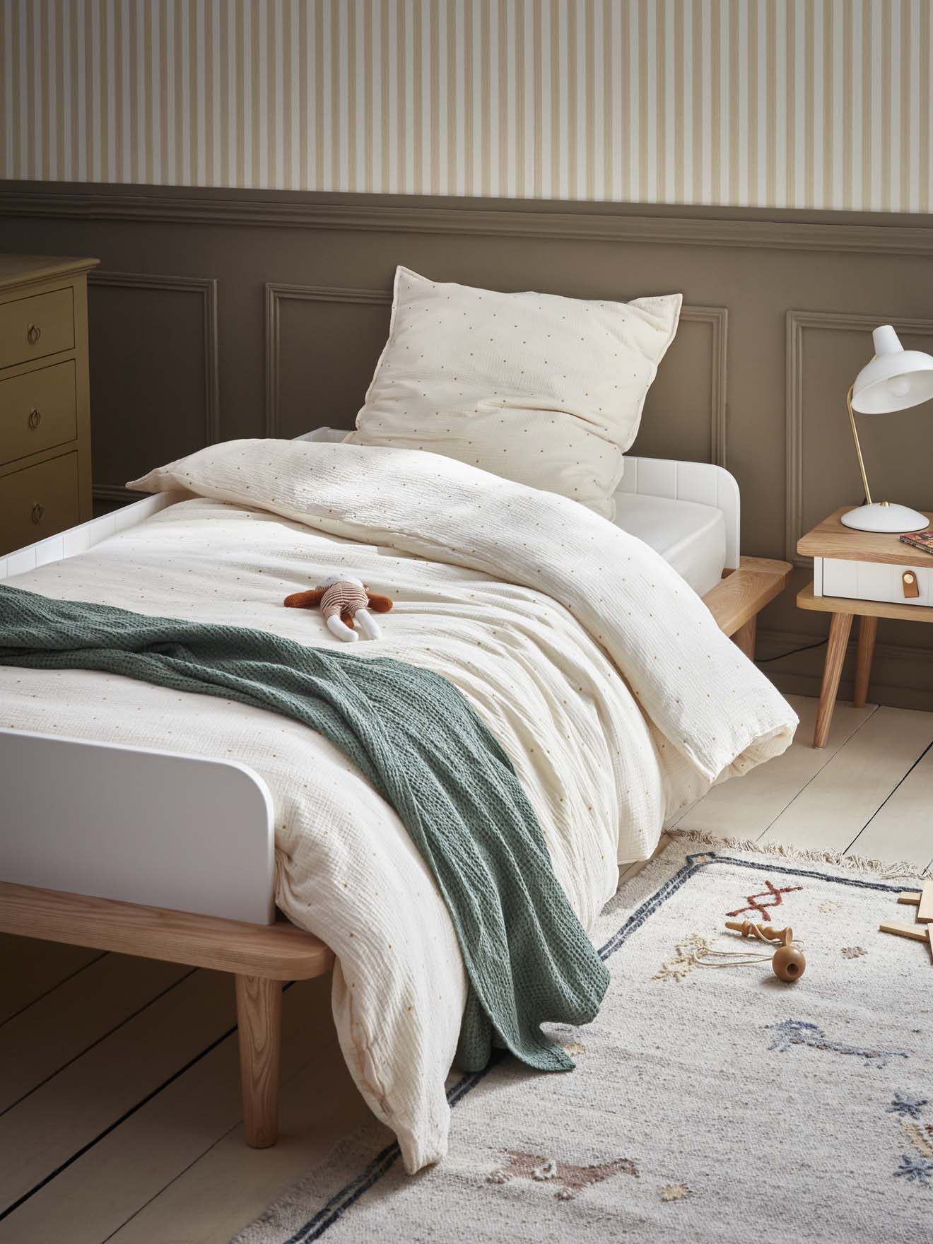 Duvet cover strewn with little, ochre stars. Soft cotton gauze is updated in a starry version.