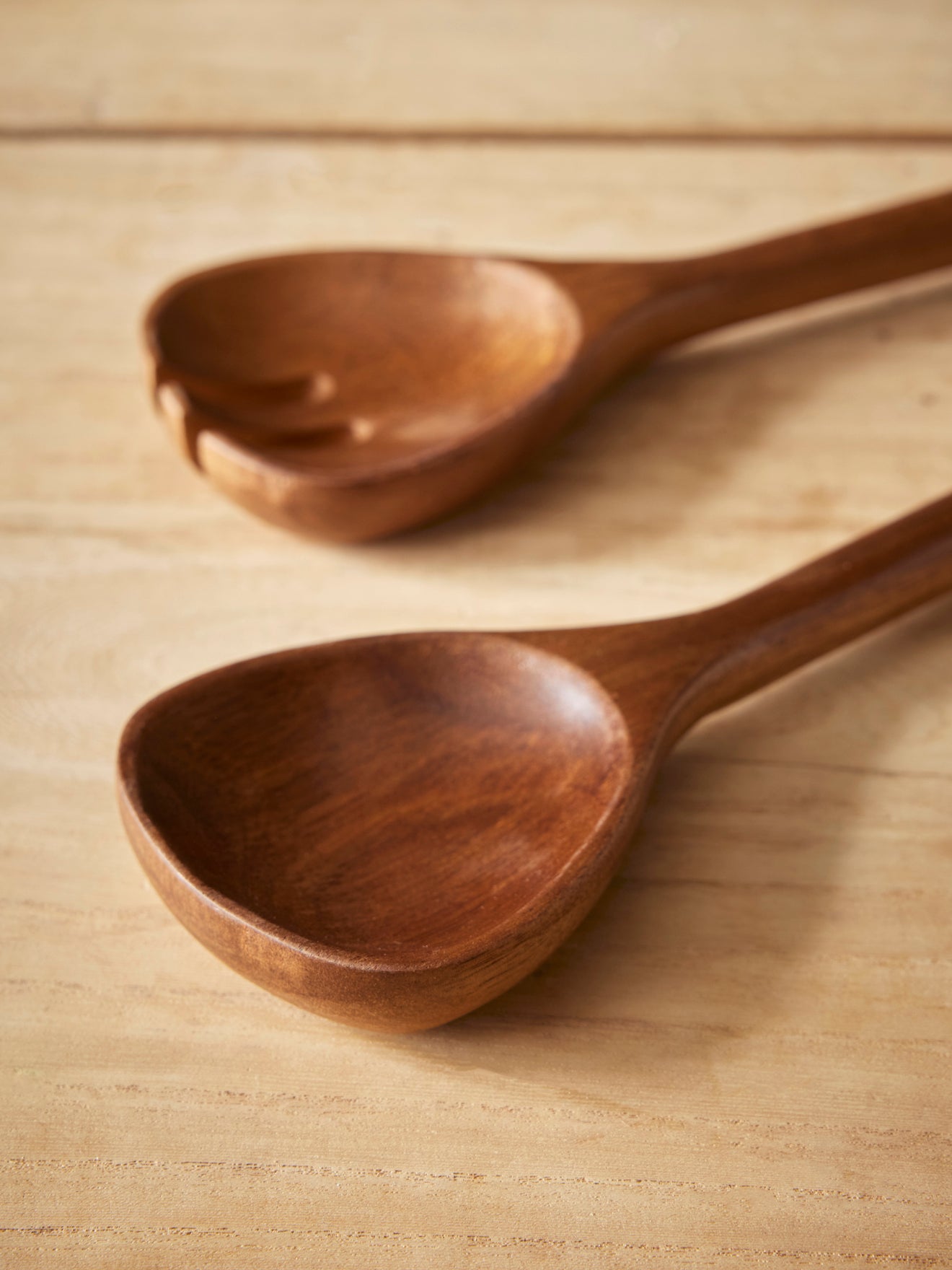 Salad utensils made with solid acacia wood. Timeless and hardwearing for charmingly natural classics.