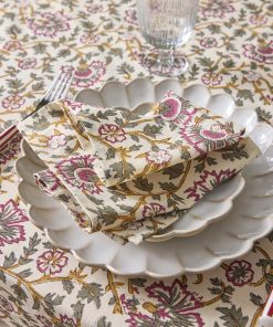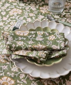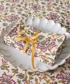 Set of 4 pure cotton printed table napkins with either the Anika motif on a green background or the Amali motif on a cream background. Authentic and refined patterns, handcrafted in India. For the design of these napkins, we chose India for its creative talent, artisanal techniques, and unique style. An ancient culture with specific craftsmanship that influences many of our designs.