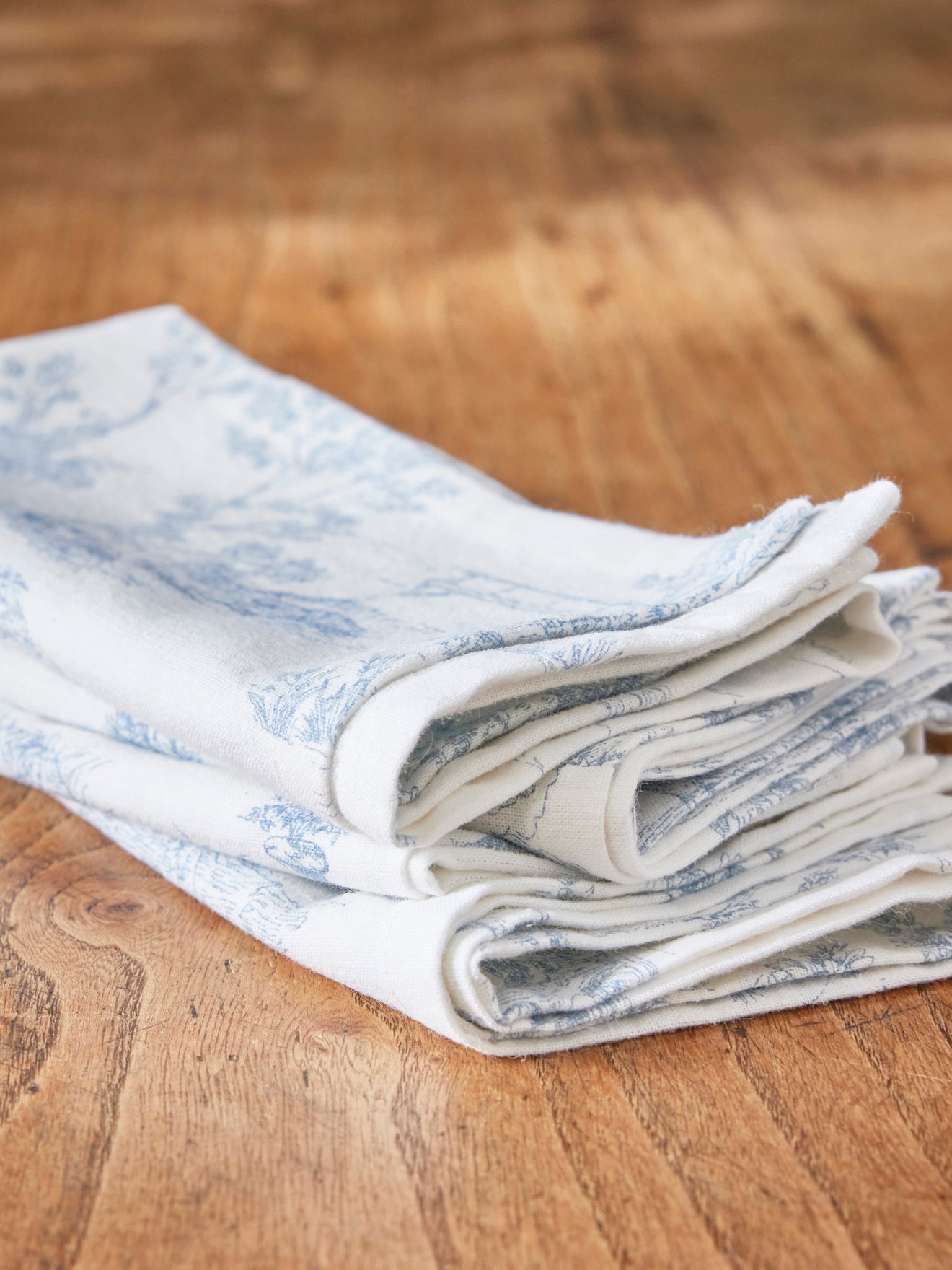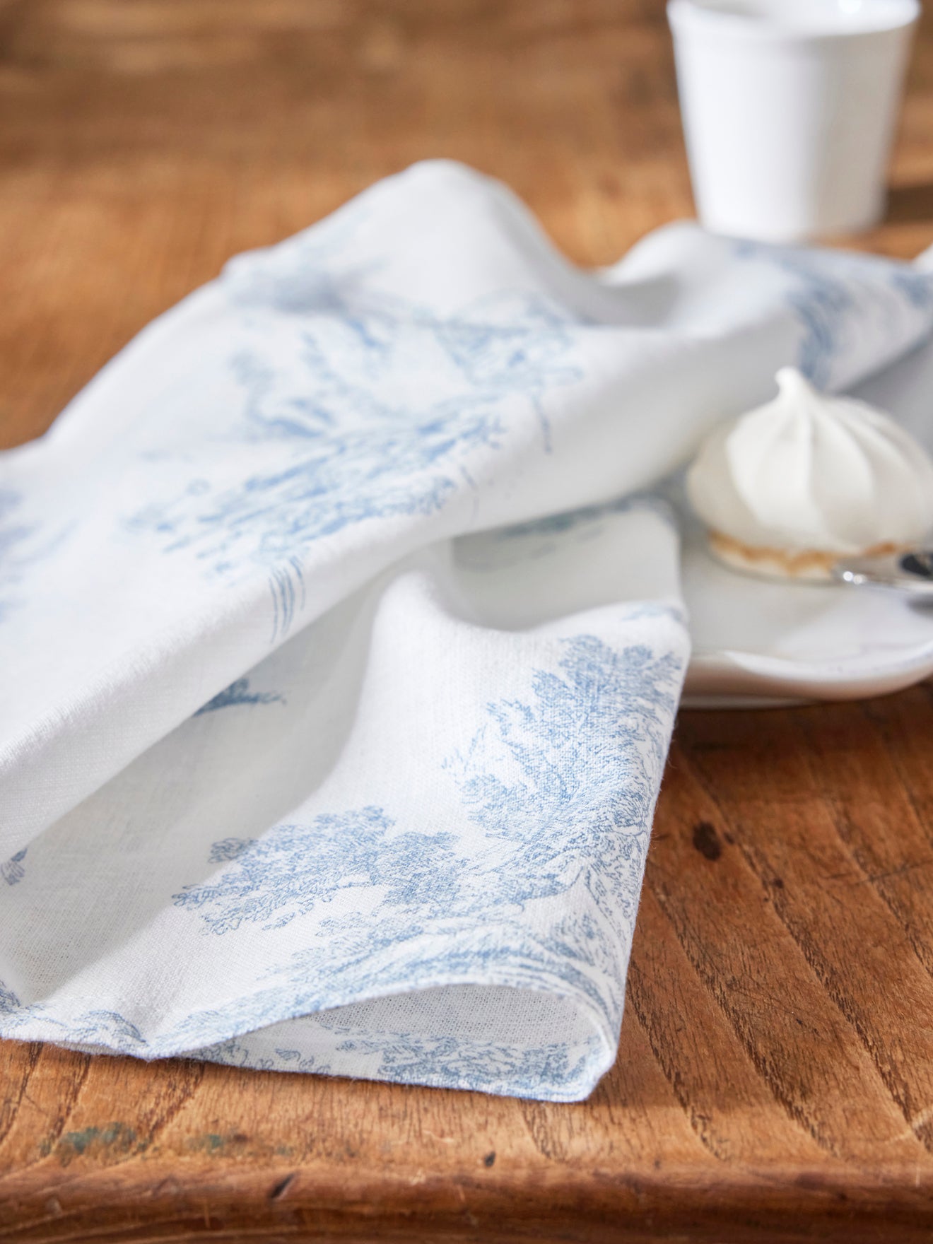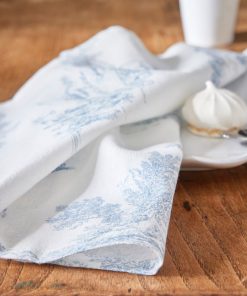 Set of 4 napkins inspired by the renown Toile de Jouy. Authentic style with a soft textured look. The woven cotton combines the comfort of cotton (91%) with a touch of viscose (9%) for more supple drape. Perfectly balanced wellbeing and elegance.