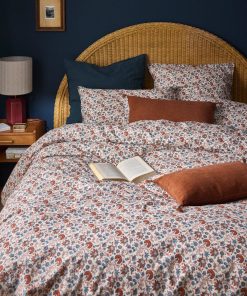 The Abelie print is a genuine Indian floral pattern reinterpreted by our design team in blue and terracotta tones on a cream background. Cotton percale duvet cover with tuck-in flap and front/back print.