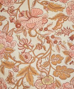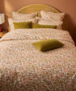 Cotton percale duvet cover covered with grandiose flowers tinted in caramel, blush pink, cream and more on both sides. Amelia is a floral print inspired by antique tapestries. An exclusive motif designed by our style team.