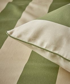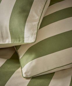 Silky softness and timeless wide stripes. Cotton sateen pillowcase with piping. The slightly shiny reflections fade with each wash.