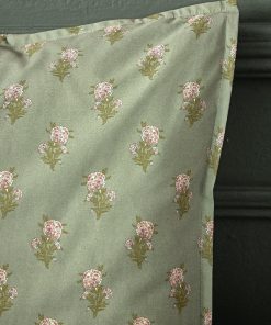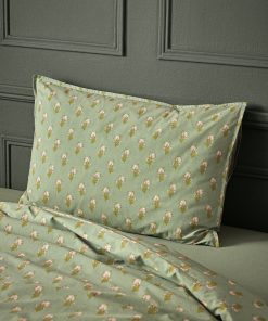 Peppered with small carnation bouquets, the Antoinette cotton percale pillowcase is soft and hardwearing. Printed on one side, solid-colored on the other, and edged with a small flat border.