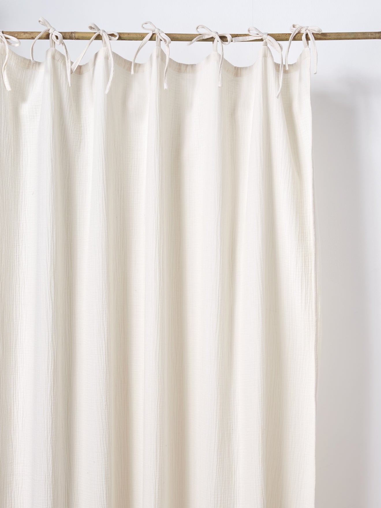 Curtain made with cotton gauze and held with small ties. A crinkled curtain with deliccate refinement.