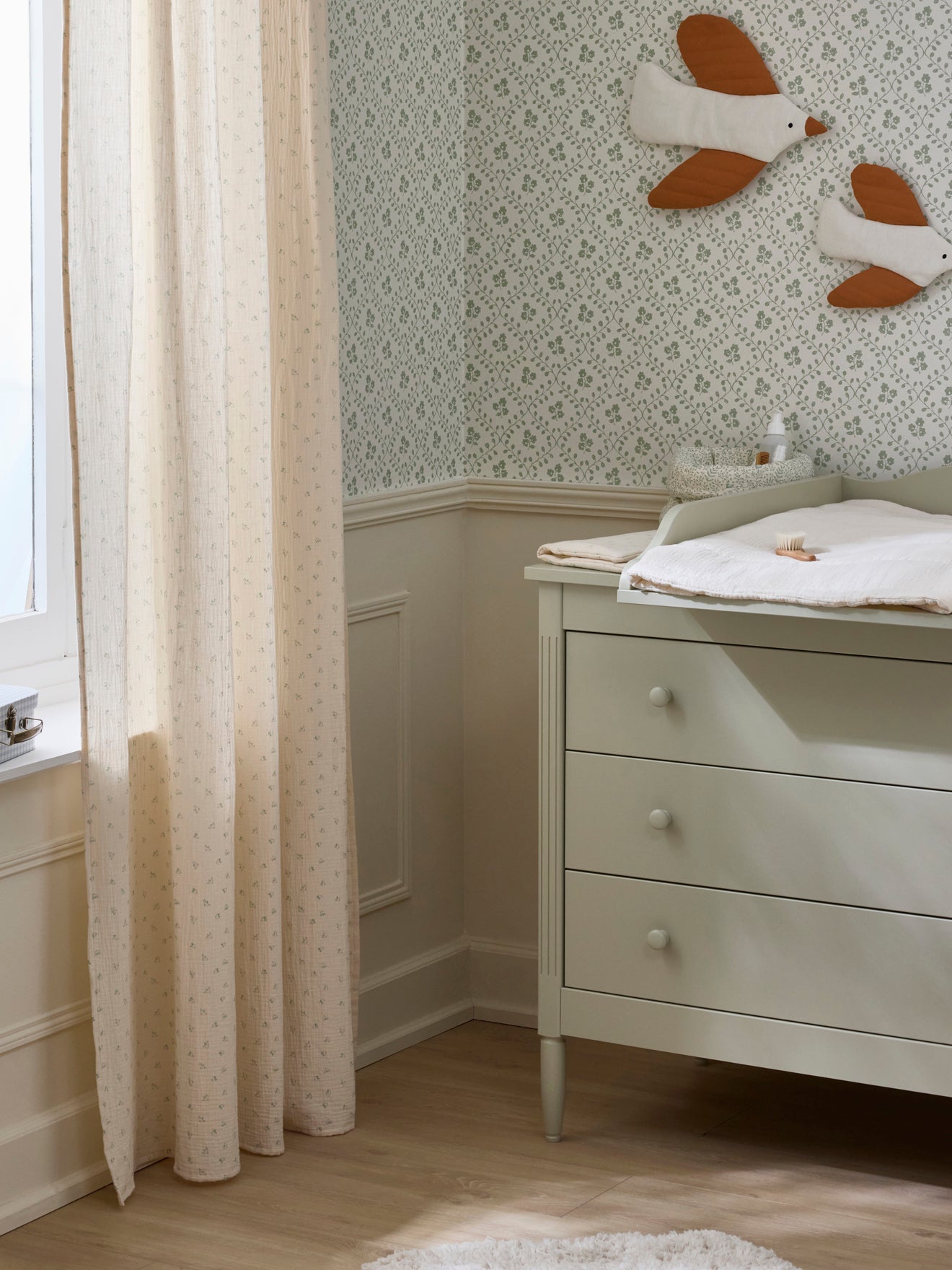 Curtain made with cotton gauze and held with small ties. A crinkled curtain with deliccate refinement.