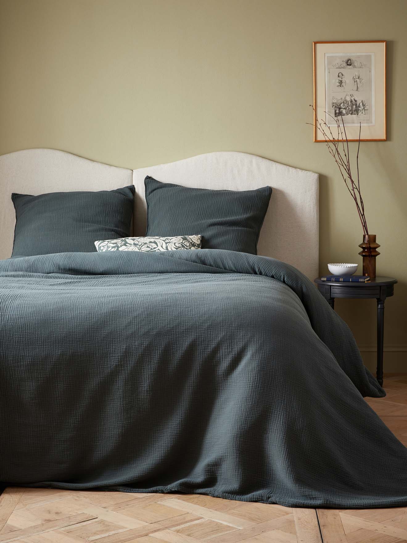 Duvet cover made in a woven cotton gauze in Portugal. The light honeycomb effect delivers soft and breezy comfort.