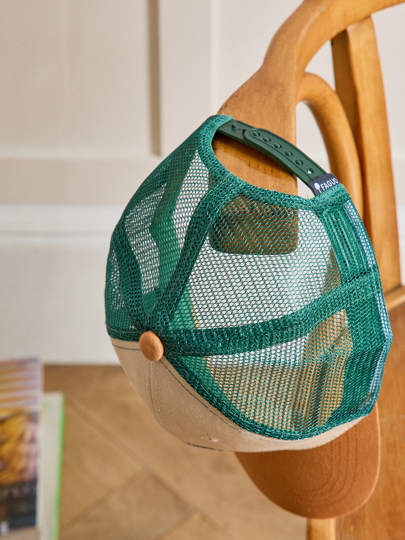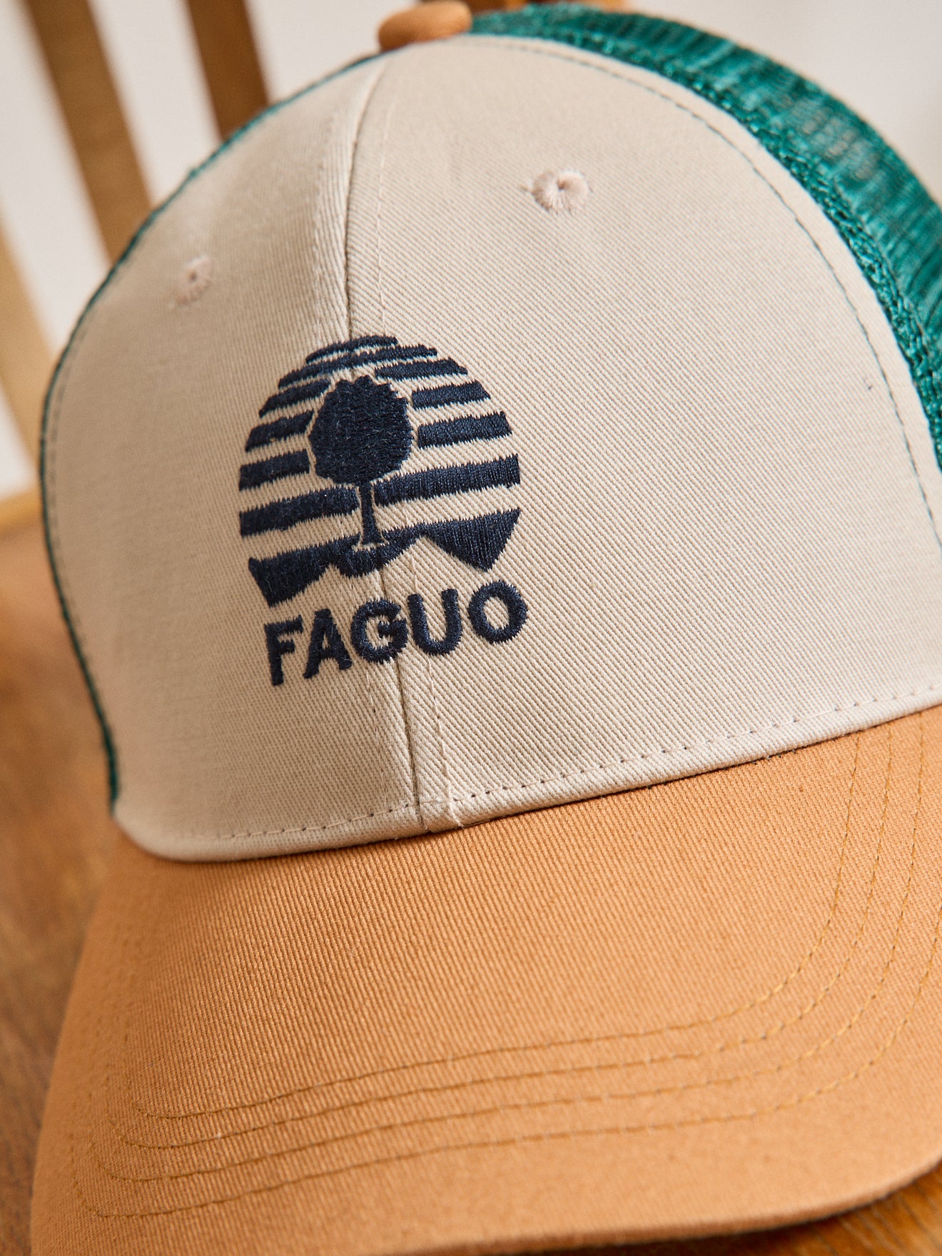 This soft and pleasant cap adds a stylish note to casual outfits. It has 6 mesh panels and embroidered ventilation eyelets that keep your head cool all day long. Designed in Nantes, the Faguo Trucker Cap is made with organic cotton and recycled fibers.