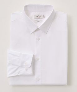 An easy-wear shirt in chic white with a trendy shape in a slightly shorter version. Fitted to enhance the figure, lightly contoured through the chest and waist. French collar, button placket and rounded cuffs.